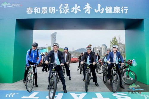 启动仪式后,在领导嘉宾的带领下,参会人员共同沿着美丽的千岛湖绿道骑行开游,共赏开春美丽景致。