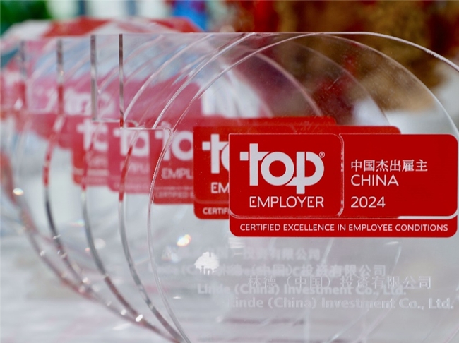 2024年1月19日,上海——全球领先的工业气体和工程公司之一——林德宣布再度荣获由杰出雇主调研机构 (Top Employers Institute) 颁发的“中国杰出雇主”认证。这是林德连续第十年获得该项荣誉认证,彰显了林德通过推动包容、多元和共建的企业文化,更好地践行可持续发展理念及企业社会责任,有力促进员工和社会福祉的积极态度。